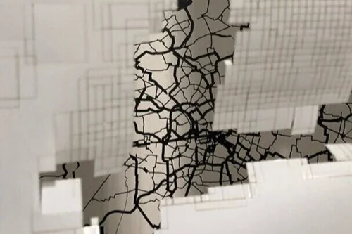 Stumbling back is a historically-accurate data visualization. Each vellum panel is seared and cut to indicate the exact geolocations (addresses) of Jews taken from their homes in Berlin, Germany and sent to Nazi Concentration Camps during World War II. Small squares indicate the abundance of people taken from one or neighbouring addresses.